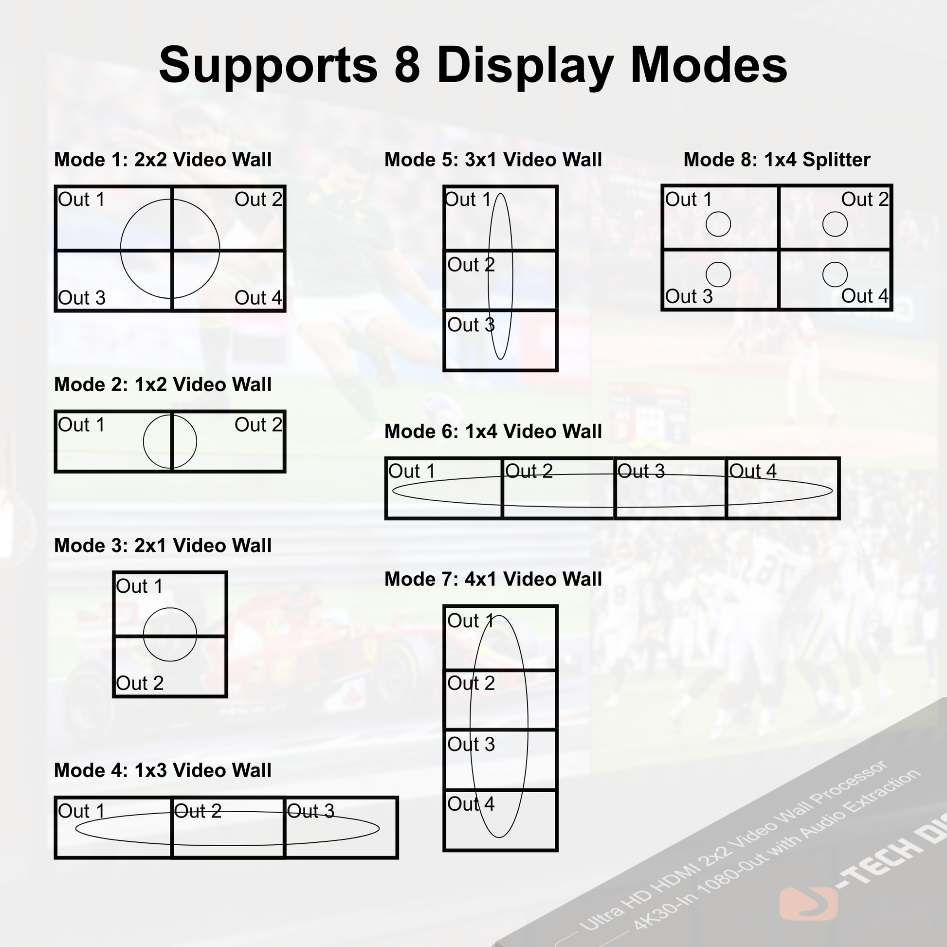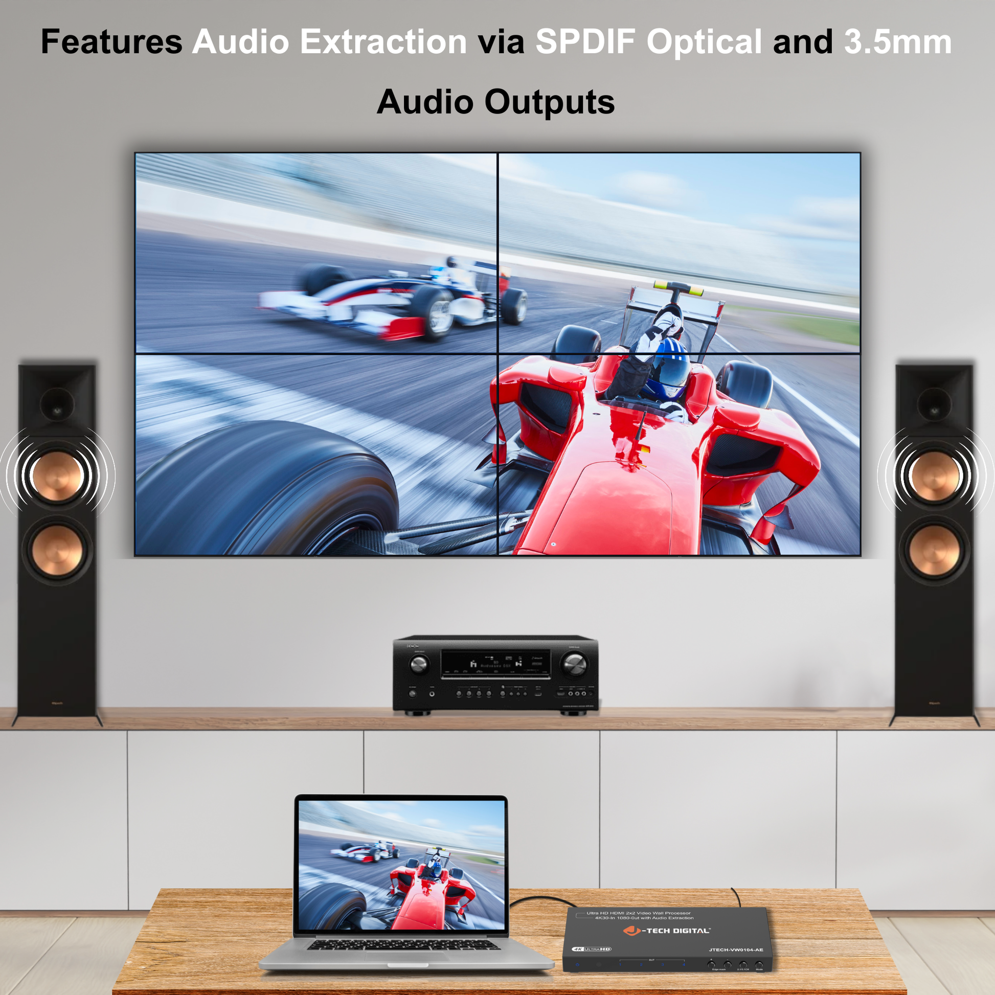 2x2 Video Wall Processor (4K30 In 1080P Out) with Audio Extraction