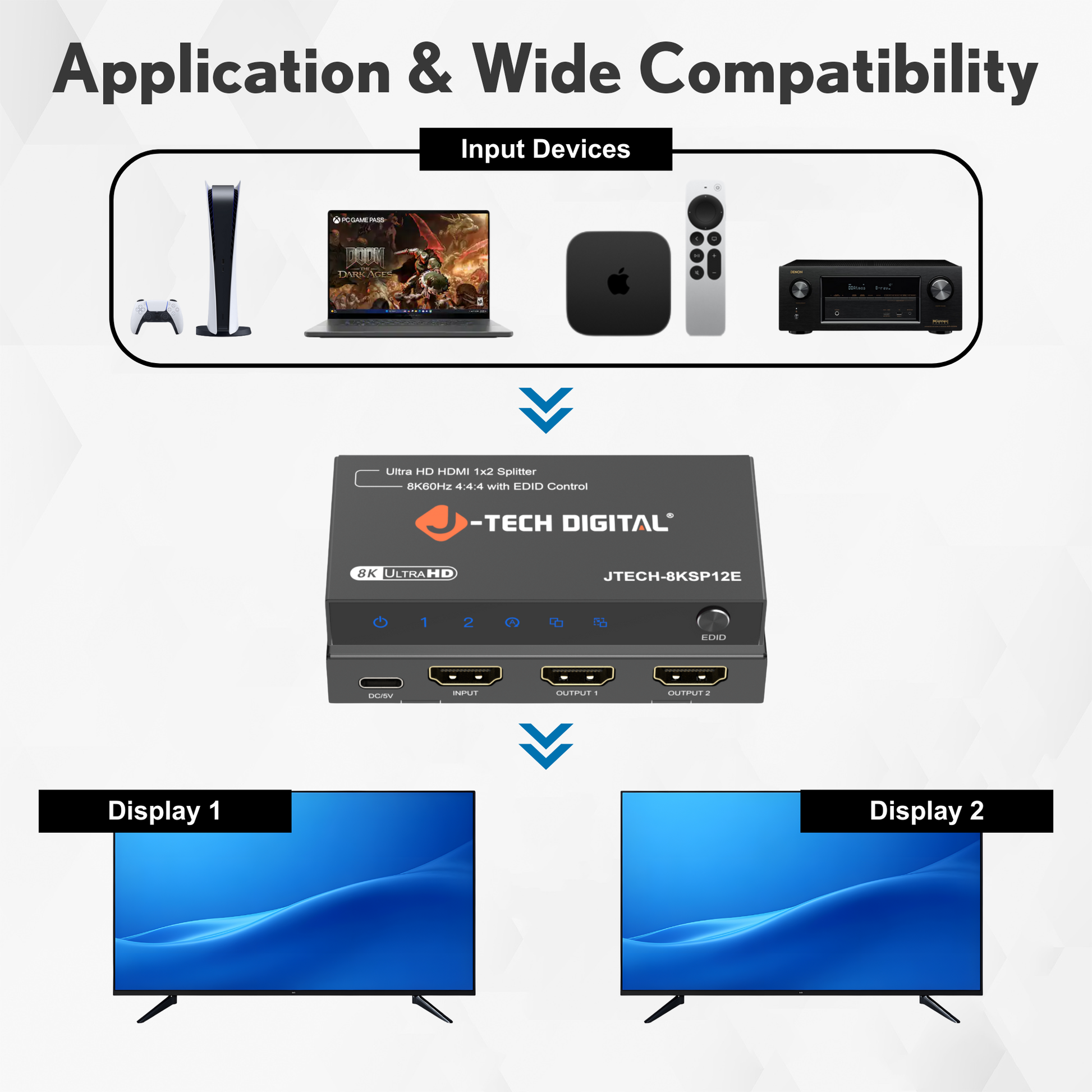 8K 60Hz 1x2 HDMI Splitter with Downscaling and EDID Control